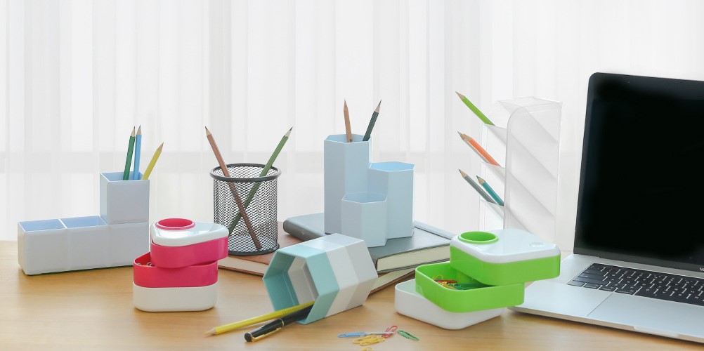 Yiwu Ding Quaokang Stationery Factory supplies company engages in high and middle grade pen holder in various specifications, gifts, gift pen holder, plastic note box, plastic business card box, metal mesh stationery, metal document tray, metal magazine rack, metal note box, metal paper basket, box, carbon paper of single-sided and double-sided, and printing carbon paper.