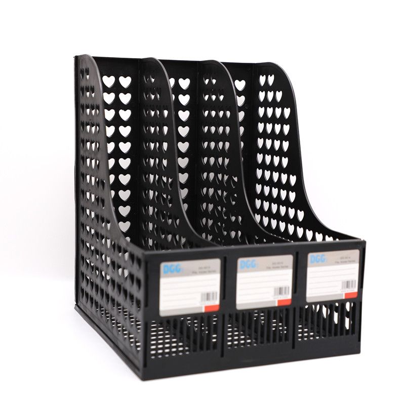 Black Heart-shaped File Holder Document Rack 3 Vertical Compartments
