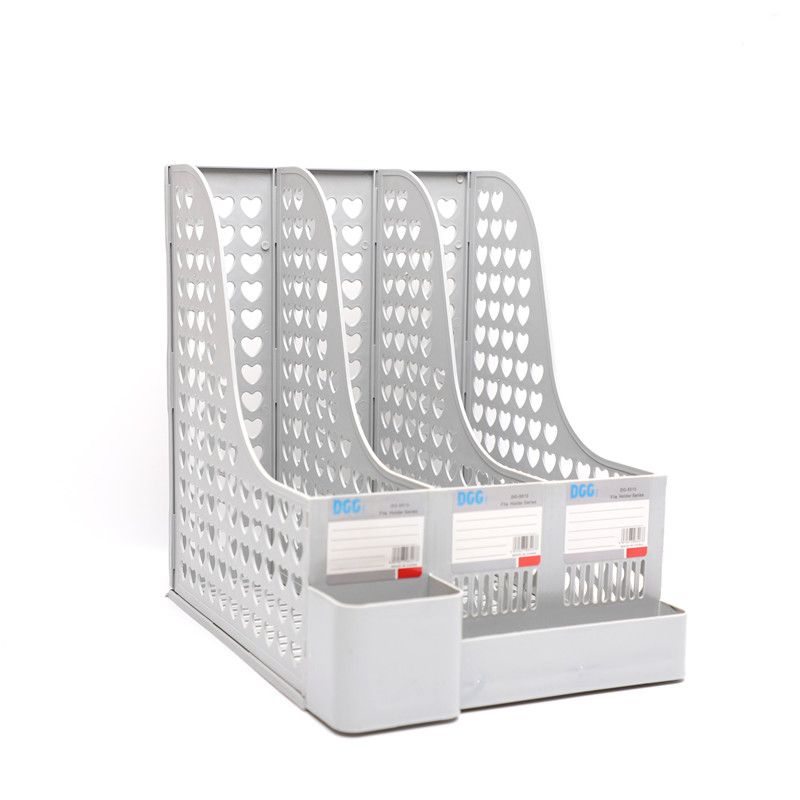 Gray Heart-shaped File Holder Document Rack 3 Vertical Compartments